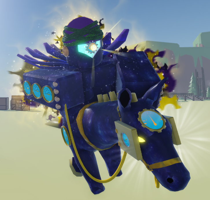 As for its shinies, Made on Hallow's Eve, contains several differences in its appearance. The main difference being that this shiny is based on "The Headless Horseman", an infamous Halloween monster with a skeletal body and a pumpkin as the head. The Stand also features a horse model with four legs instead of two, having an overall black color scheme, with glowing lights on its pumpkin head, with the horse having glowing blue eyes.