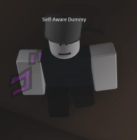 The Self-Aware Dummy is an NPC located in a cabin next to the closed Tunnel at A Bizarre Park.
