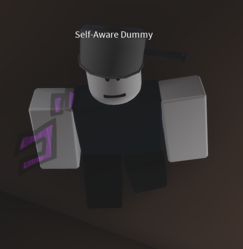 Unlike other Menacing Dummies, Self Aware Dummy has the ability to talk to the player. It originally spoke in Morse code but has since moved to speak English.